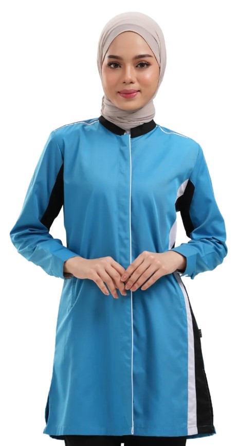 FC-1093 — Polycotton Corporate Uniform Ladies Muslimah Series Long Sleeves with Cuff (Inner Left & Right Side Pockets) 170gsm
